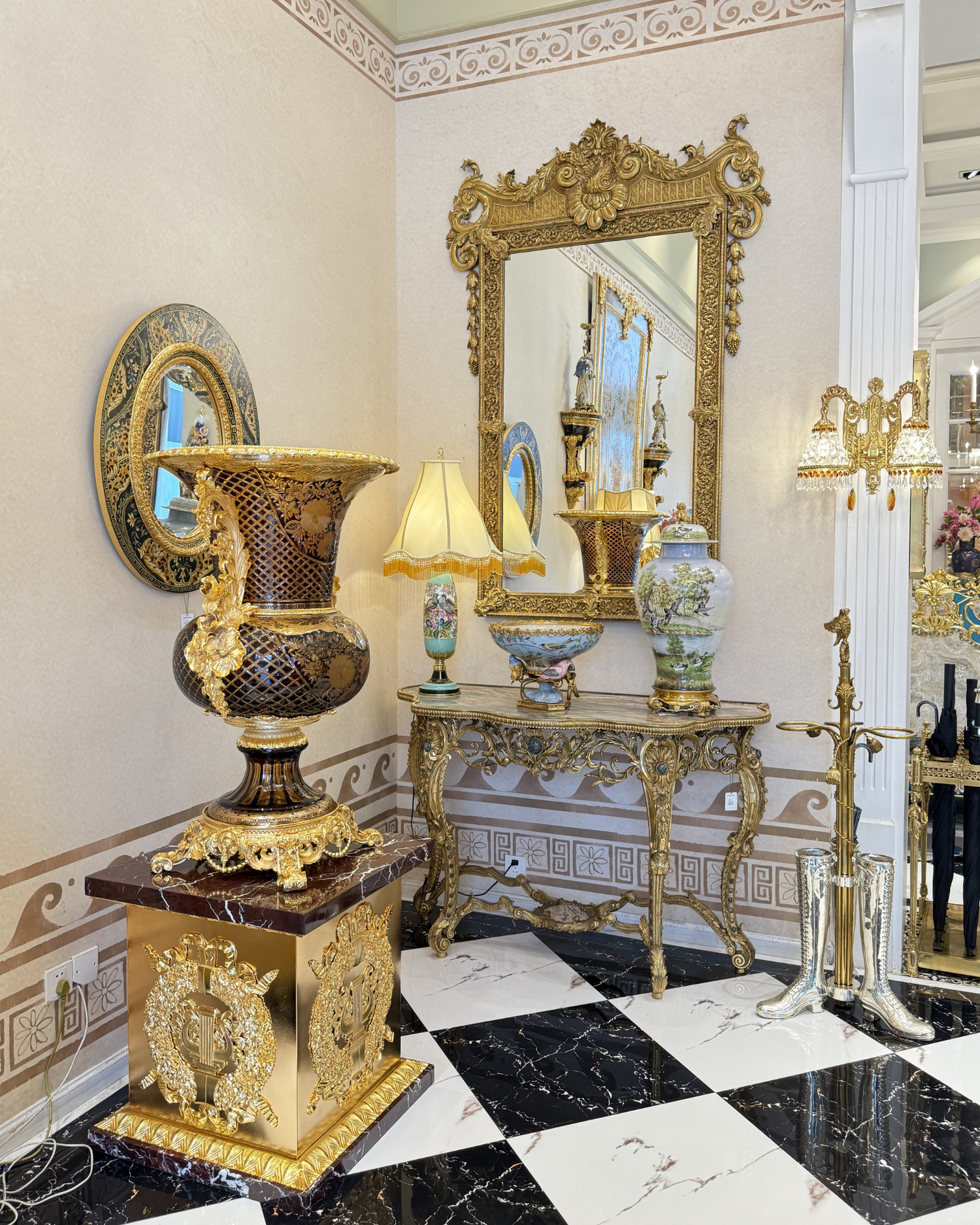 HomeDor × FH&Home | Baroque-Style Ornamental Stained Glass Vase with Brass Details