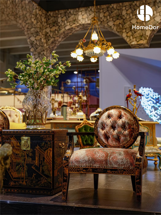 HomeDor × FH&Home | كرسي استرخاء أنيق باللون الأحمر بنقشة فينيكس العتيقة