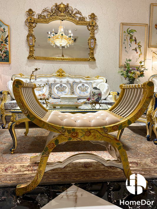 HomeDor Luxury Artistic Chinoiserie Rococo X-Frame Stool