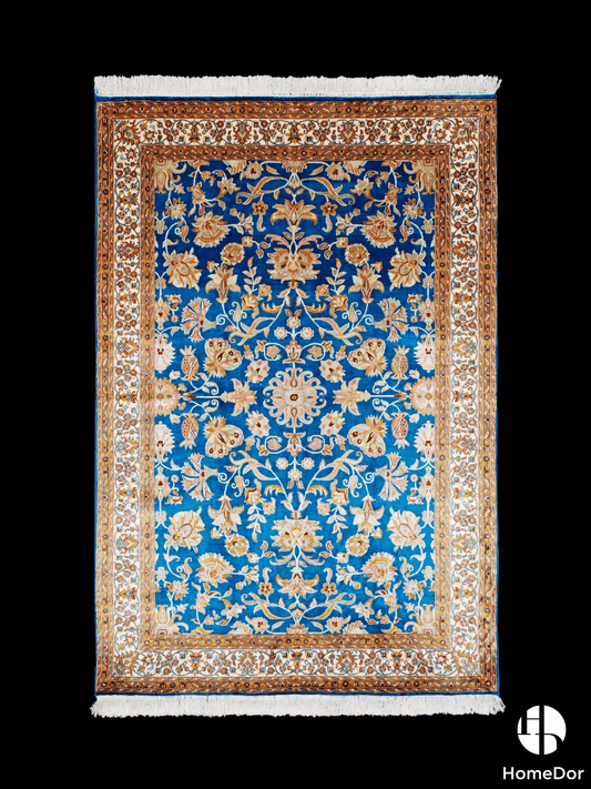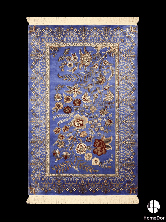سجادة كشميرية مصنوعة يدويًا من حرير التوت الأزرق المزهر 123 سم × 168 سم