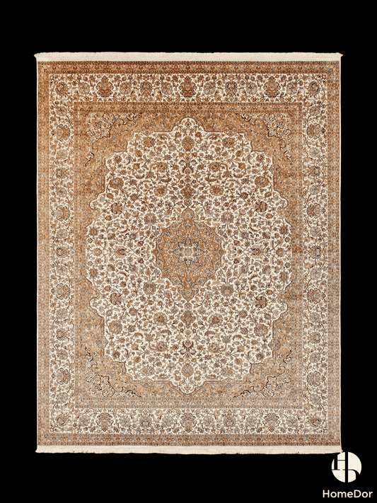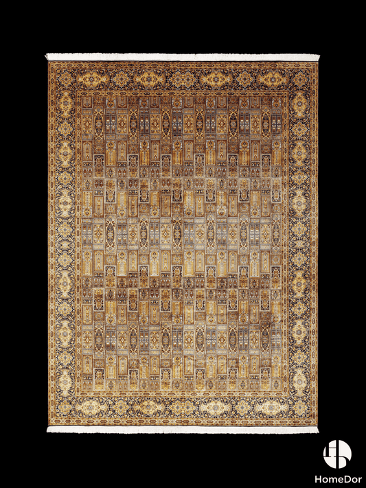 سجادة كشميرية مصنوعة يدويًا من حرير التوت الذهبي بنقوش معقدة، 272 سم × 363 سم