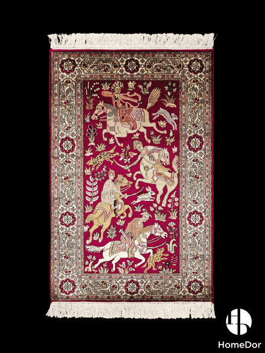 سجادة صيد مصنوعة يدويًا من حرير التوت الأرجواني من كشمير، مقاس 75 سم × 117 سم