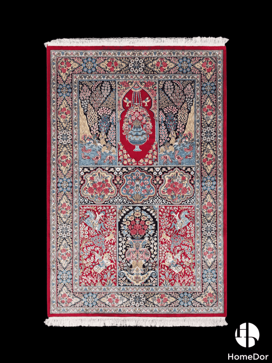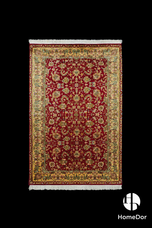 سجادة كشميرية مصنوعة يدويًا من حرير التوت الأحمر المزهر 120 سم × 180 سم