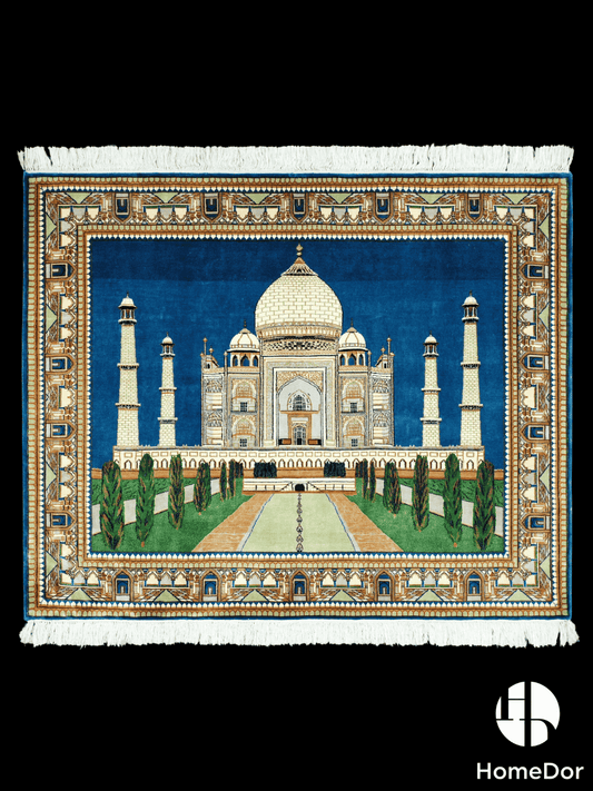 سجادة تاج محل من حرير التوت الكشميرية المصنوعة يدويًا، 125 سم × 150 سم