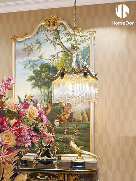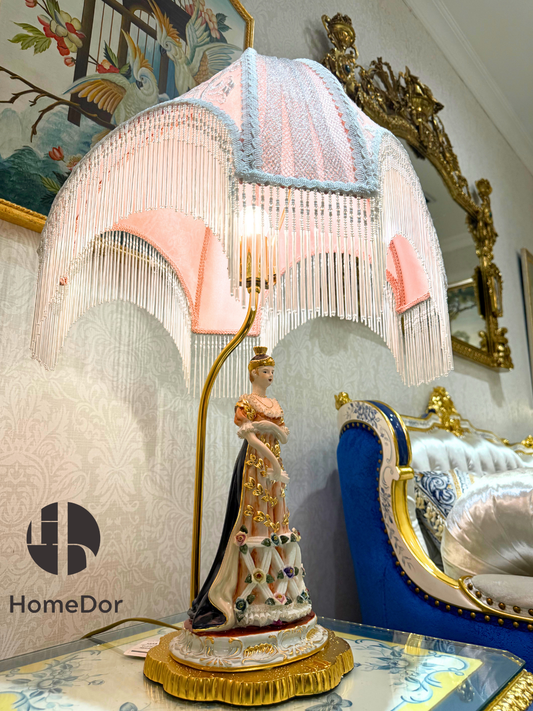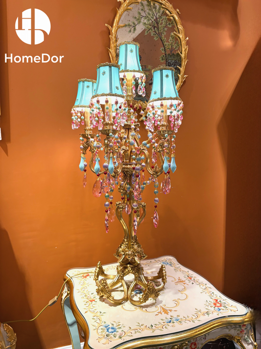 HomeDor Vintage Gilded Pastel Beaded Lampshade Table Lamp