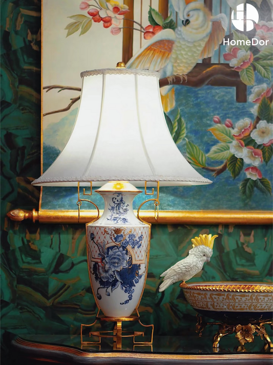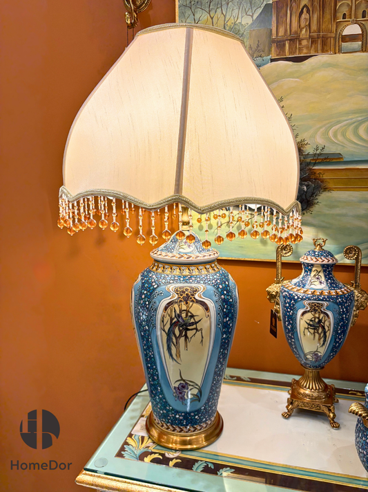 HomeDor Opulent Azure Palace Blue Avian Floral Table Lamp