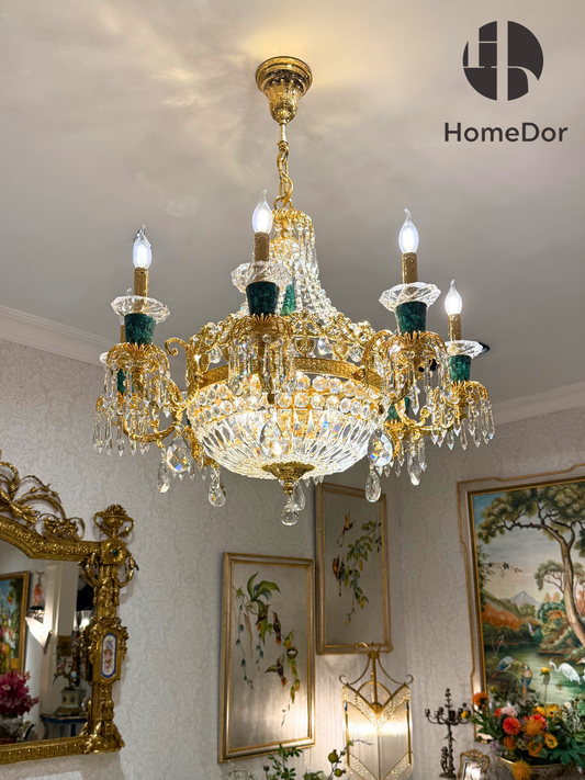 HomeDor Luxury French Malachite Accent Crystal Chandelier