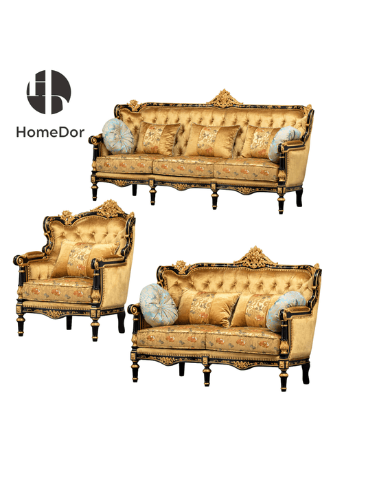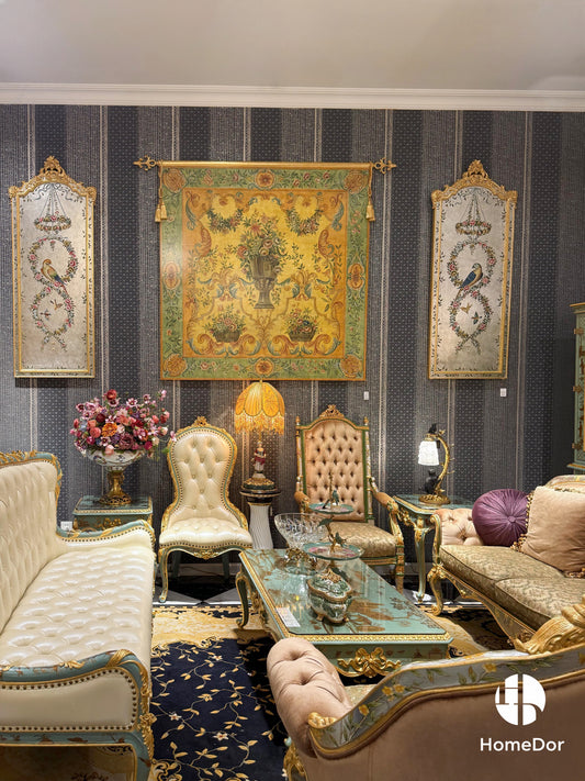 طقم أريكة رويال فرينش روز من خشب الماهوجني الأخضر الجنّي المنحوت يدوياً من هوم دور × إف إتش آند هوم
