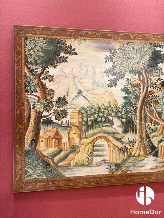 ديكور حائط فاخر من هوم دور، بإطار منحوت على الطراز الباروكي، بتصميم منظر طبيعي خلاب