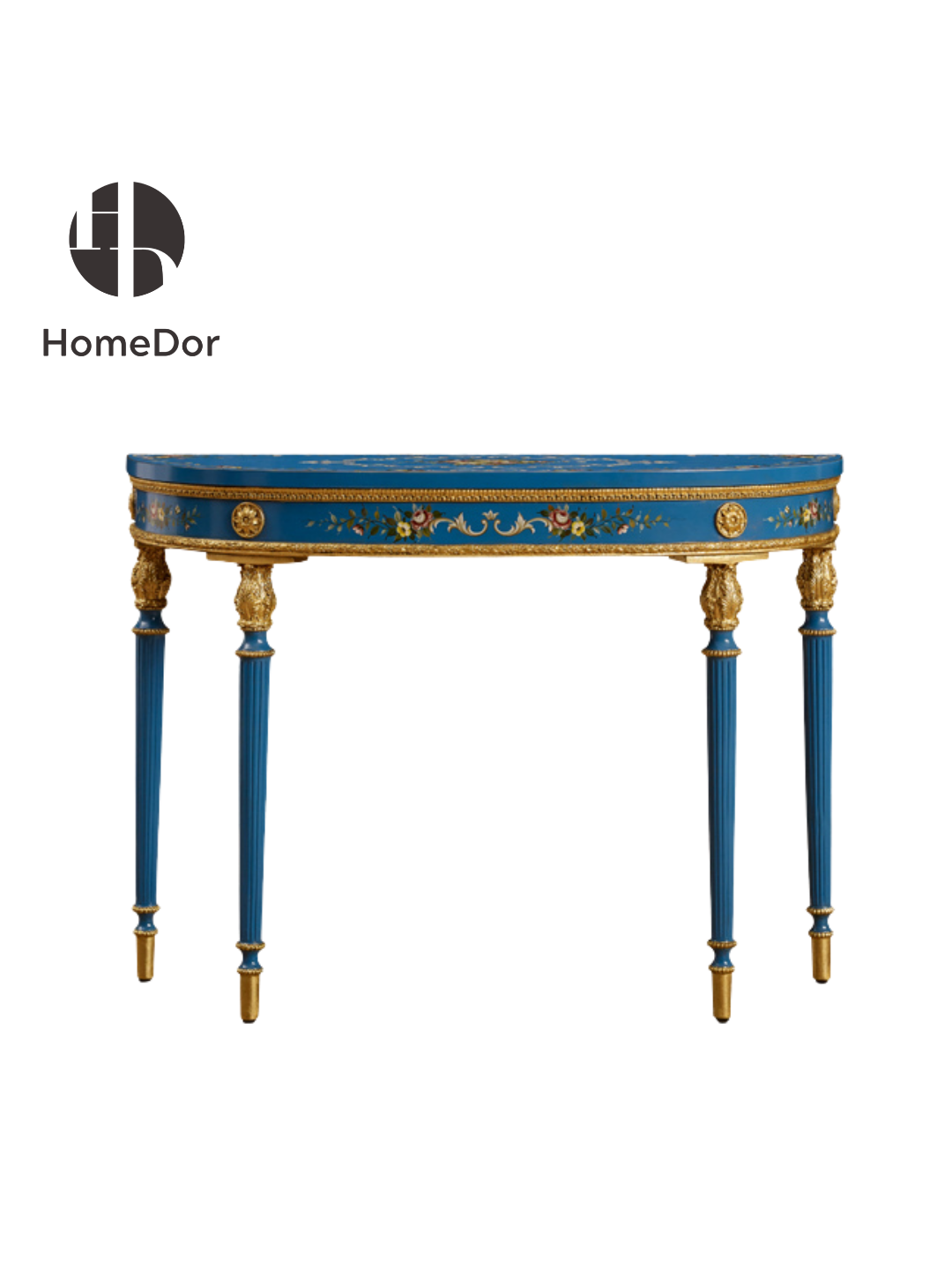 This striking console table from HomeDor takes its name from its vivid azure finish, which evokes the rich harmony of a musical symphony, paired with delicate hand-painted gilded floral motifs that dance across its oval tabletop. Its defining column legs, fluted with classical architectural detail and capped with ornate gilded capitals, pay homage to Neoclassical design principles, balancing regal grandeur with graceful proportions. The smooth, lacquered surface provides an elegant stage for displaying curated art, crystal vases, or heirloom decor, while the symphony of deep blue and radiant gold creates a timeless, eye-catching focal point. Perfect for luxury entryways, upscale villa foyers, and boutique hotel lobbies, it blends artisanal craftsmanship with architectural elegance, elevating any space with its melodic blend of color and classic design.