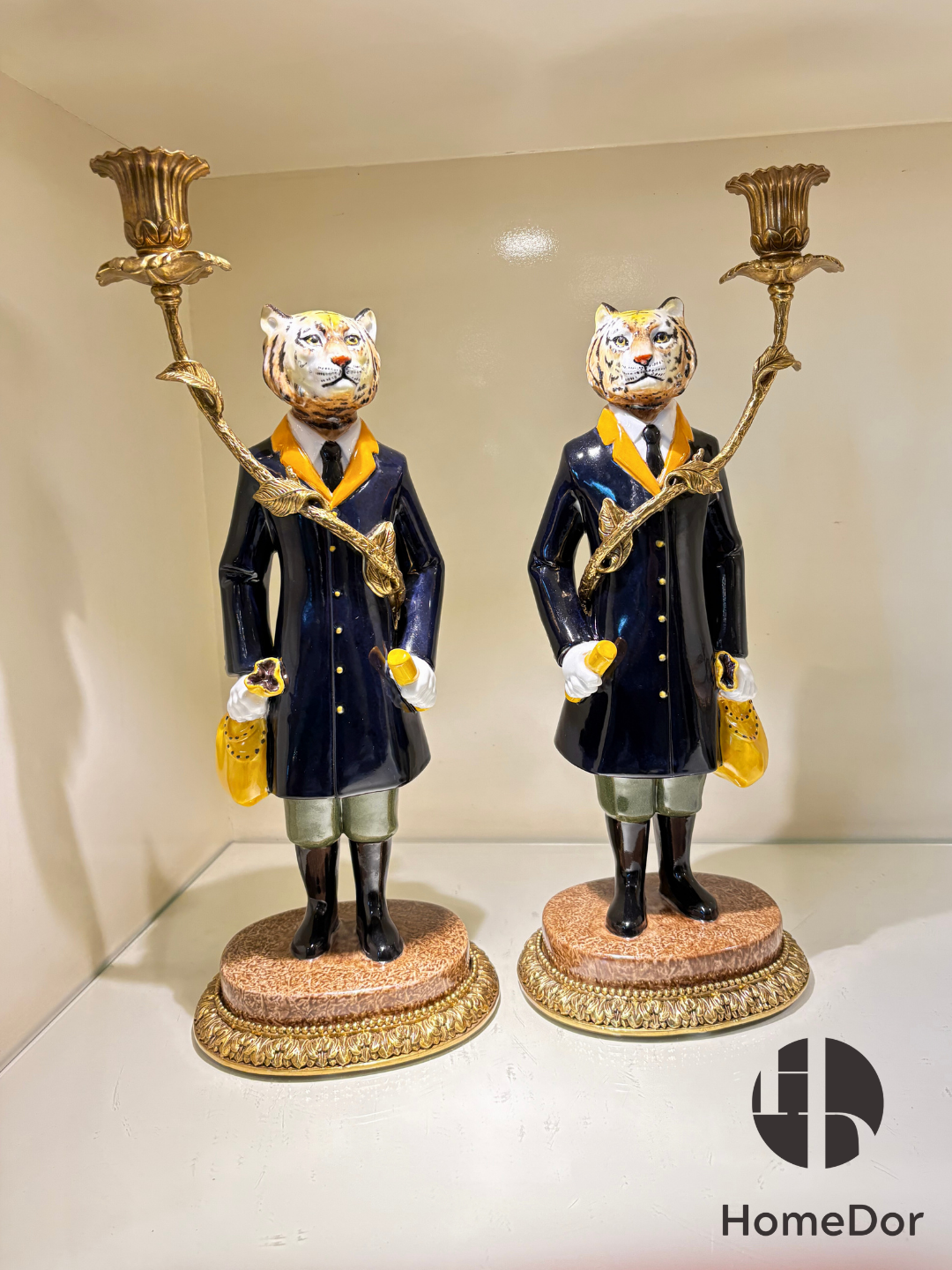 HomeDor Dapper Tiger Gentleman Candelabra Pair