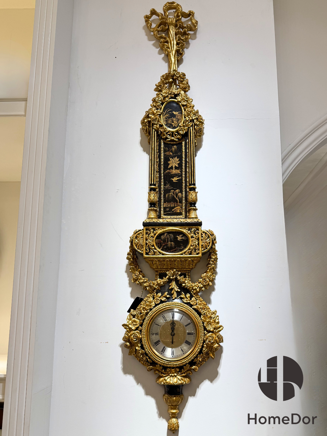 ساعة الحائط الرائعة طويلة الشكل، المستوحاة من طراز الباروك، والمزينة بنقوش مزخرفة، من مجموعة HomeDor x FH&Home، قطعة فنية رائعة تنضح بالفخامة والأناقة الخالدة. صُممت هذه الساعة وصنعت بدقة على يد حرفيي FH&Home، لتكريم روعة الطراز الباروكي.