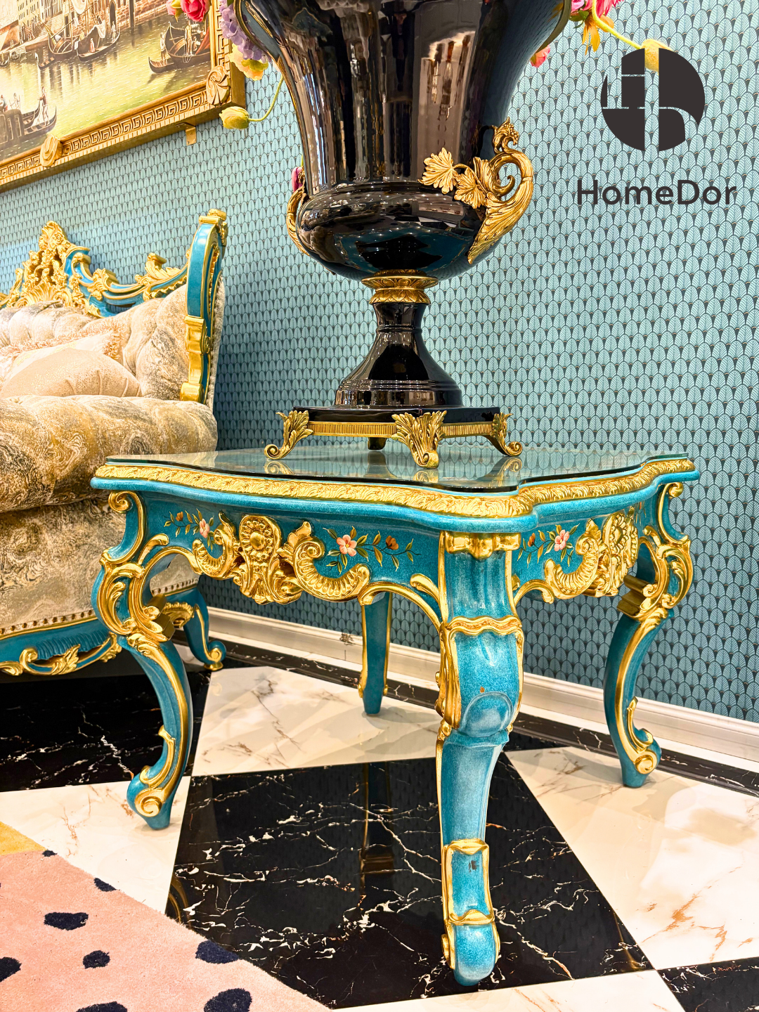 طاولة القهوة/الطاولة الجانبية "بلو سيمفوني" هي مزيج رائع بين سحر العالم القديم ودقة الصنعة، تجسد رومانسية التصميم المستوحى من طراز الباروك من خلال تفاصيلها الدقيقة وموادها الفاخرة. تتوسط هذه الطاولة زخارفها الزهرية المرسومة يدويًا، والتي أبدعها الحرفيون بدقة متناهية لتضفي تباينًا ناعمًا ورقيقًا على اللون الأزرق الملكي والزخارف الذهبية. والنتيجة قطعة فنية راقية تُشع بالفخامة والجمال الشعري. سواء وُضعت بجانب أريكة فخمة أو استُخدمت كنقطة محورية في ركن جلوس رسمي، فإن هذه الطاولة تُعد سطحًا عمليًا وتحفة فنية في آن واحد.