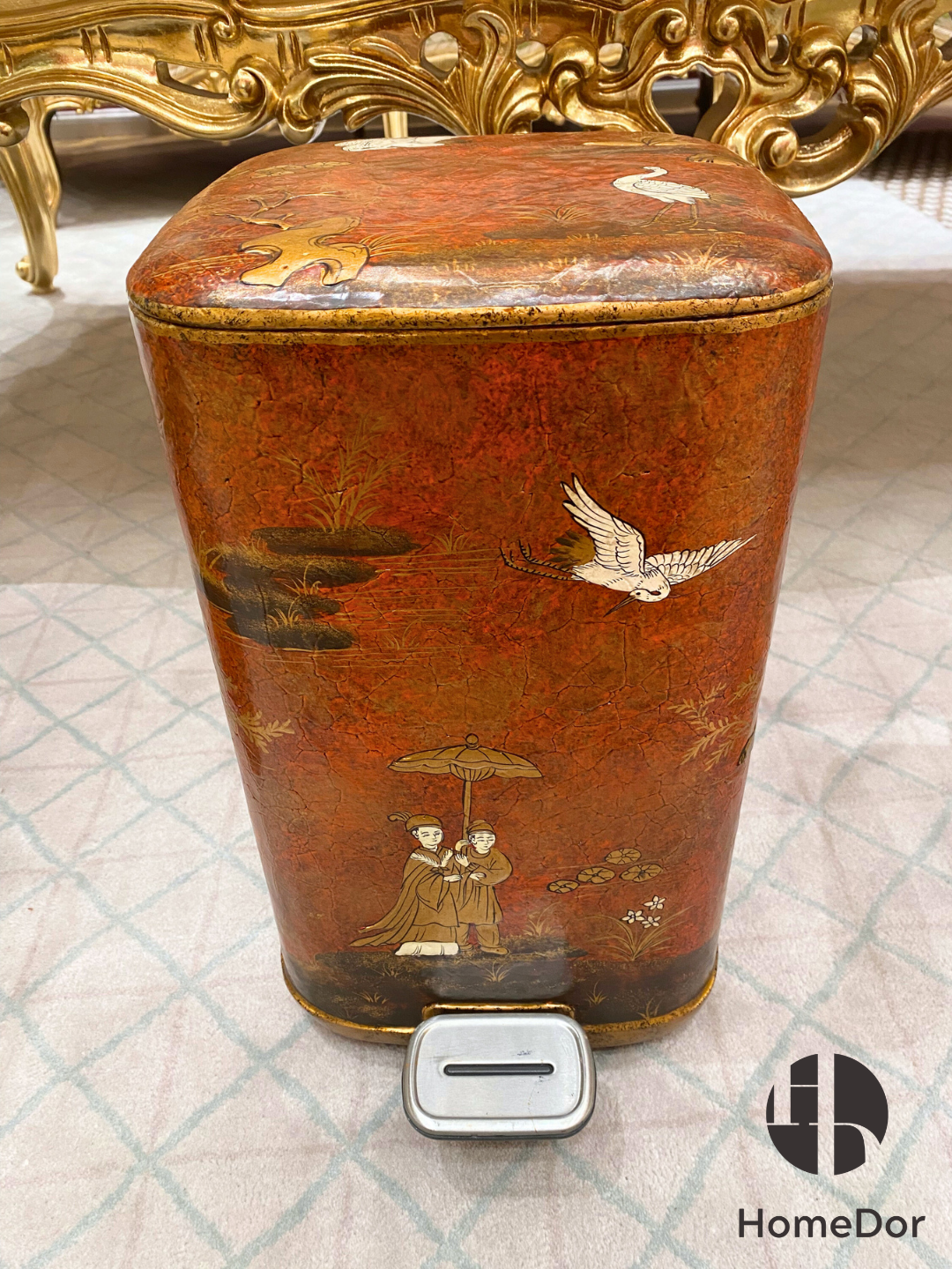 نقدم لكم سلة مهملات صينية مطلية باللون الأحمر المرجاني - مزيج رائع من الفن الشرقي التقليدي وسحر الطراز القديم. يضفي لونها الأحمر المرجاني الدافئ المتشقق لمسة جمالية على المشاهد المرسومة يدويًا (والتي تضم أشجار النخيل والكركي وشخصيات العلماء)، بينما تضيف اللمسات الذهبية فخامة رقيقة. تصميم دواسة القدم يوازن بين العملية والجاذبية الزخرفية للسلة، محولًا إياها من أداة يومية أساسية إلى قطعة ديكور صينية أنيقة.
