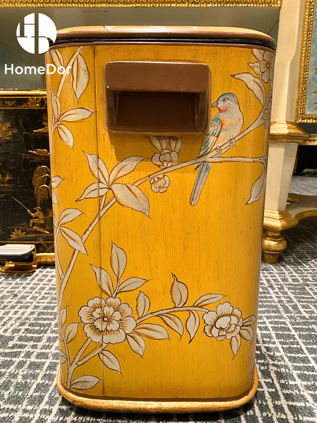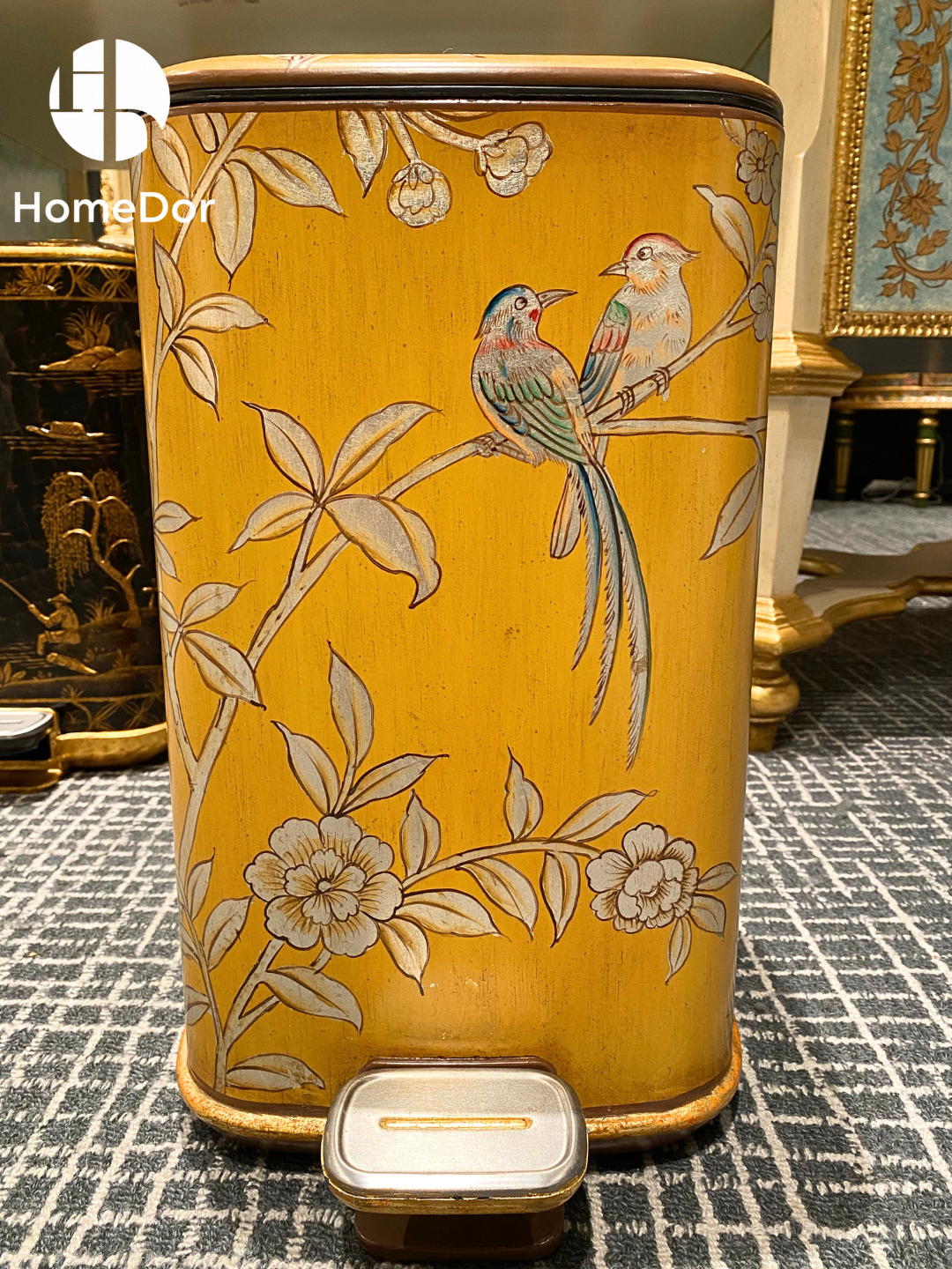 سلة مهملات من سلسلة هوم دور إمبريال يلو بنقشة زهور صينية وطيور