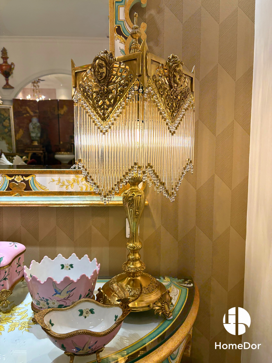 HomeDor × FH&Home | مصباح طاولة فاخر بتصميم آرت ديكو مصنوع من النحاس ومزين بشراشيب كريستالية