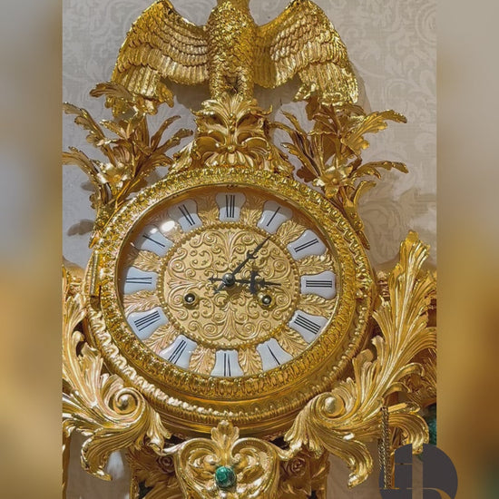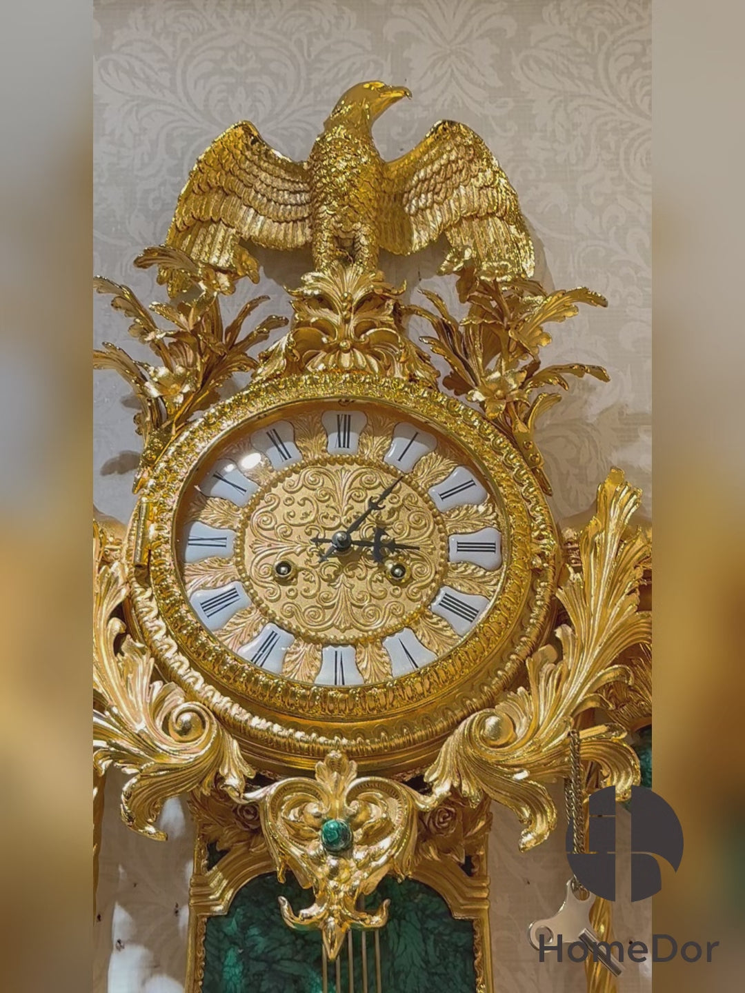 HomeDor × FH&Home | ساعة حائط روكوكو من الملكيت مع نسر من النحاس المذهب ونقوش دقيقة