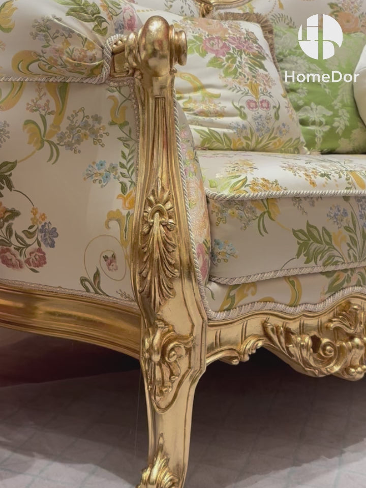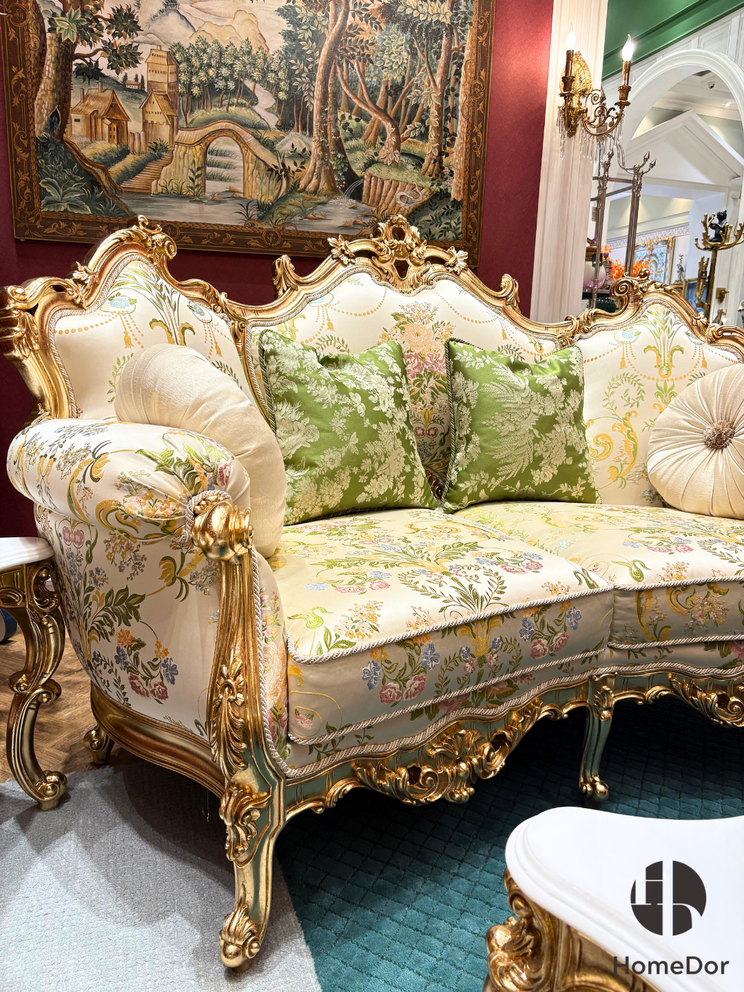 Indulge in the opulence of Romantic Rococo Soft Green Pastoral Floral Sofa Set—a masterpiece that marries French Rococo’s iconic grandeur with the dreamy charm of pastoral design. Its hand-carved frame (adorned with sweeping scrollwork and delicate detailing) embodies Rococo’s signature luxury, while the lush floral upholstery (paired with soft green accents) infuses pastoral romance: the botanical patterns and muted green touches create a visually soothing, dreamlike ambiance that feels both lavish and inviting.Each piece balances ornate craftsmanship with cozy comfort—plush cushions and tailored upholstery ensure relaxation, while the gilded curves and floral motifs turn your living space into a refined, romantic retreat. Perfect for elevating formal parlors, elegant living rooms, or vintage-inspired interiors.