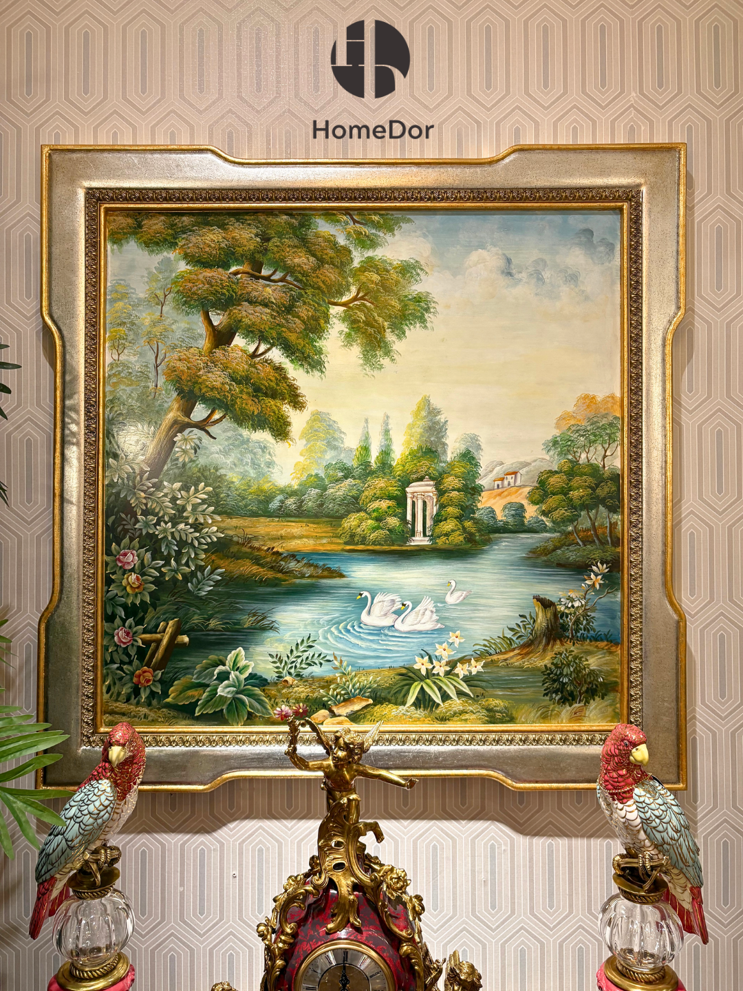 أضف لمسة من الرقي إلى مساحتك مع لوحة جدارية "منظر بحيرة هادئة" بإطار نحاسي أنيق، قطعة فنية خالدة تجسد سحر المناظر المائية الخلابة. بمزيجها من درجات الأخضر الناعمة والخضراء، ومياهها الزرقاء الهادئة، وتفاصيلها الطبيعية الرقيقة، تضفي اللوحة أجواءً ريفية هادئة تبعث على السكينة في أي غرفة. يضفي الإطار النحاسي الأنيق لمسة من الفخامة الراقية دون أن يطغى على جمال اللوحة الهادئ. يكمل اللون النحاسي ألوان المنظر الطبيعي، بينما يبرز الإطار المصقول والنظيف دقة ضربات الفرشاة وروعة التكوين.