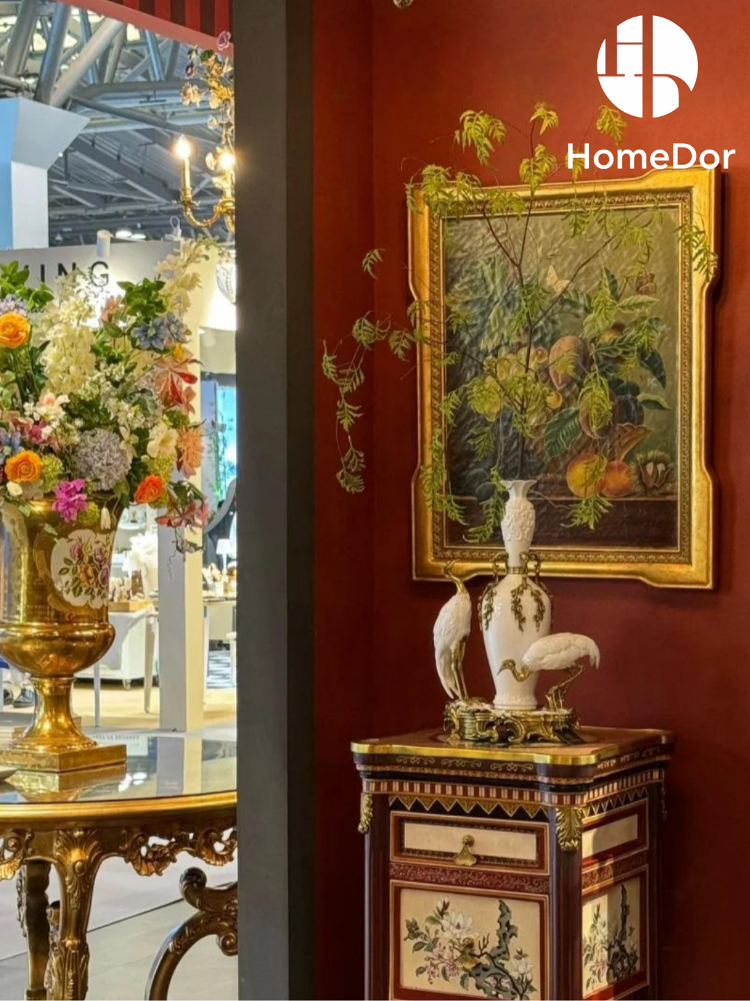 HomeDor Ornate Embossed Floral Treasure Vase with Twin Cranes