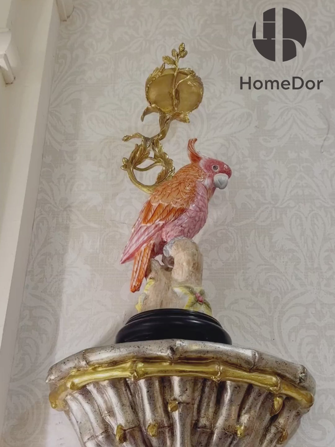 The contrast between the smooth, lifelike porcelain of the birds and the ornate, polished gold of the branches creates a striking visual balance. Set on a sleek, black wooden base, they elevate any space with their blend of vintage luxury and tropical charm. Whether displayed as a statement centerpiece on a dining table, a decorative accent on a mantel, or as part of an elegant vanity setup, these candle holders cast a warm, flickering glow that brings the sculpted parrots to life, infusing your home with a sense of whimsy, sophistication, and timeless beauty.