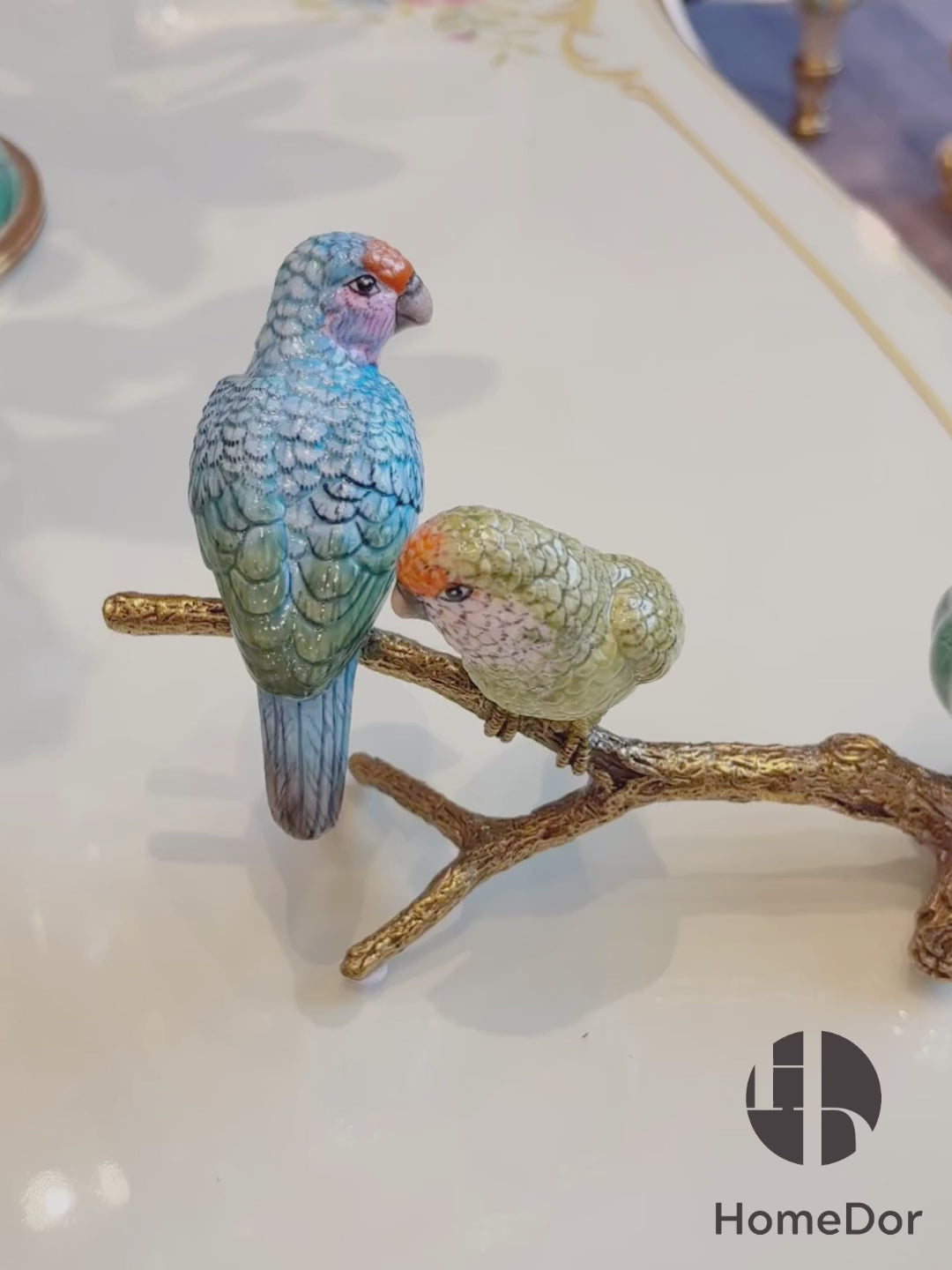 This elegant 2-piece candle holder set fuses artisan craft with nature-inspired charm, featuring bird figurines perched on sculpted gilded brass branches and paired with glossy verdant green porcelain votive cups. The warm gold and vibrant green palette creates a striking cohesive contrast: one piece has a lovely parrot pair, the other a delicate sparrow trio, all with lifelike detailing for vivid dimension.Functional and decorative, it holds tealight/votive candles; the soft glow filtering through the green glass casts a cozy, inviting ambiance. Versatile for modern, boho or classic decor, it elevates mantels, entry consoles, dining tables and vanities perfectly. A timeless luxury home accent for nature lovers, and a thoughtful gift for housewarmings, holidays and special occasions.