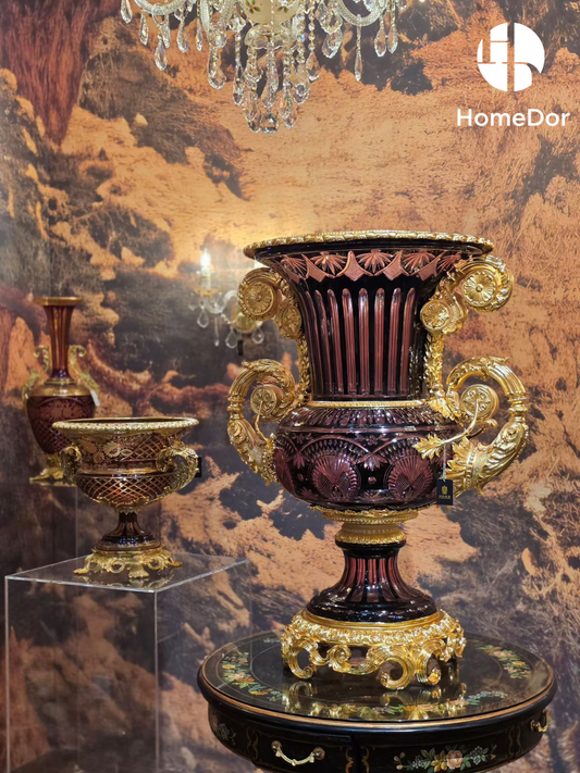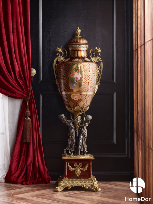 HomeDor Imperial Red Baroque Copper-Mounted Porcelain Vase