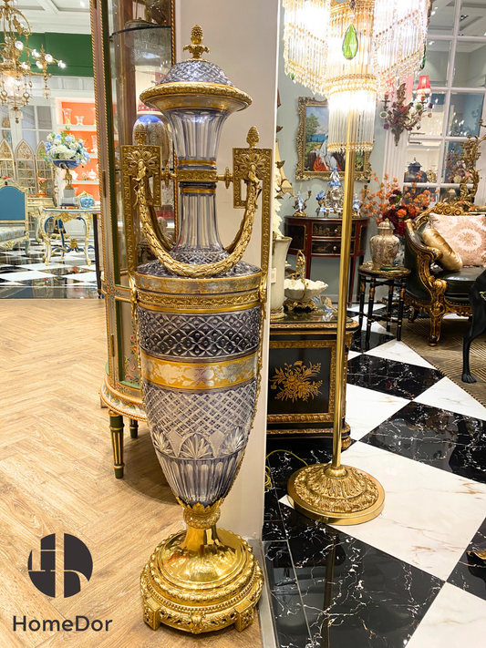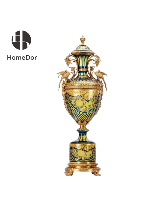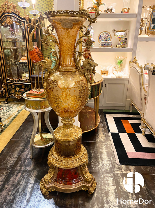 HomeDor Imperial Gilded Bird Amber Glass Floor Vase
