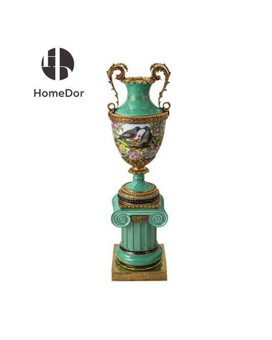 HomeDor Emerald Garden Collection Lovebirds Hand-Painted Porcelain Floor Vases