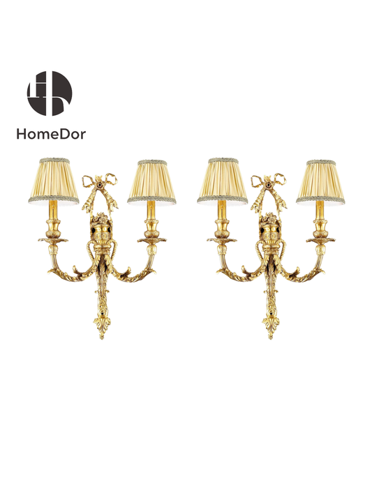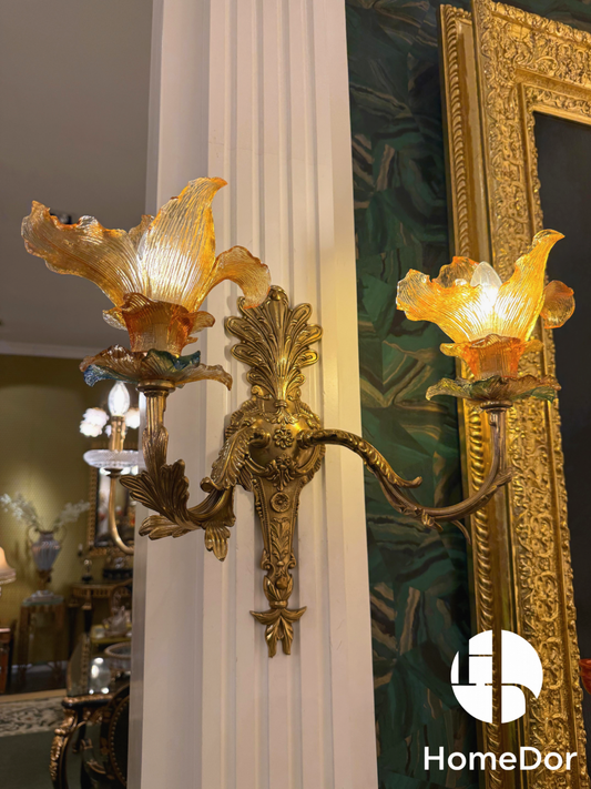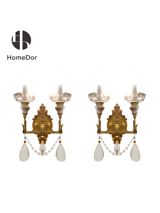HomeDor Luxury Rococo Double Arm Glass Wall Sconce
