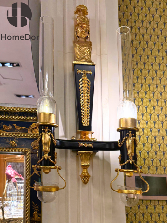 HomeDor Neoclassical Roman Soldier Bust Double Arm Wall Sconce