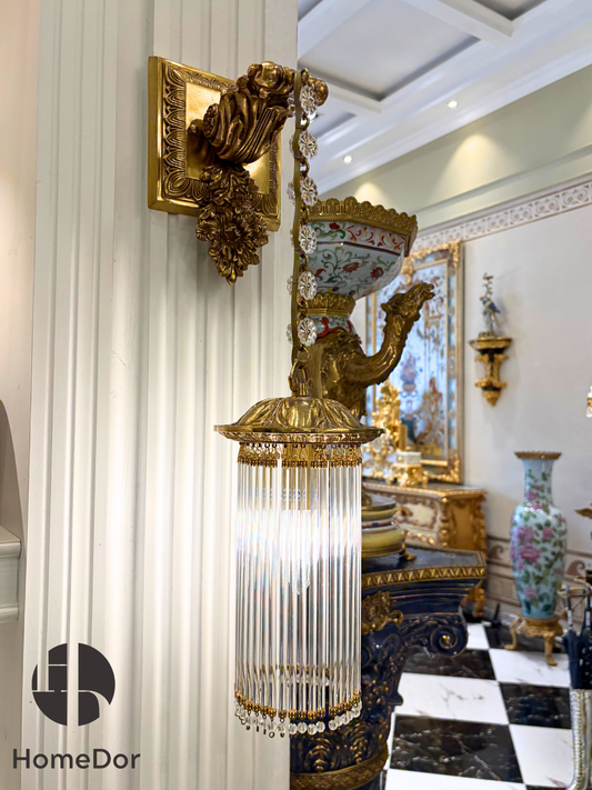 HomeDor Luxury Baroque Gilded Crystal Fringe Wall Sconce