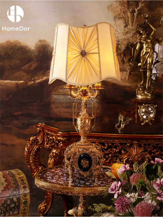 HomeDor Luxury Rococo Gilded Urn Table Lamp with Pleated Shade