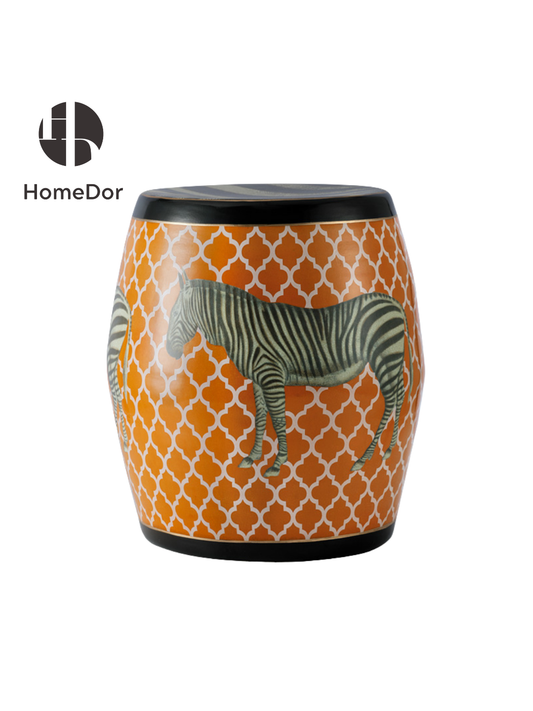 HomeDor Safari Elephant & Zebra Motif Porcelain Garden Stool