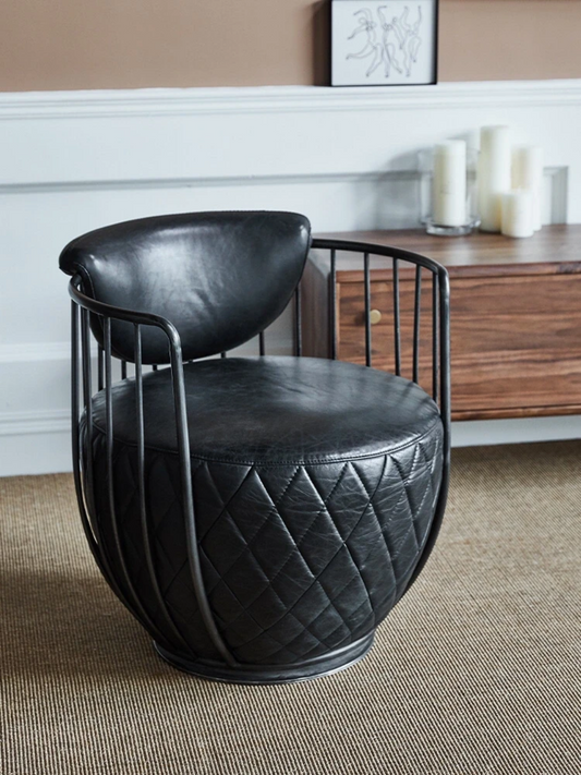 HomeDor Industrial Black Leather Swivel Drum Sofa Chair