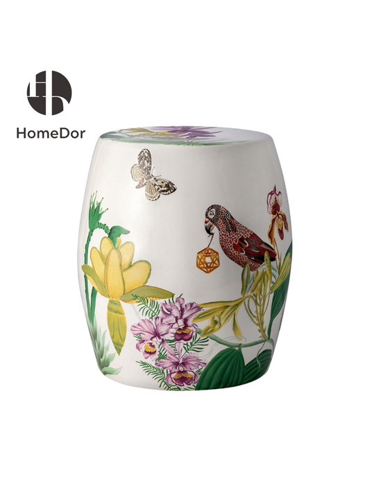 HomeDor Artisan Painted Nature Motif Porcelain Garden Stools