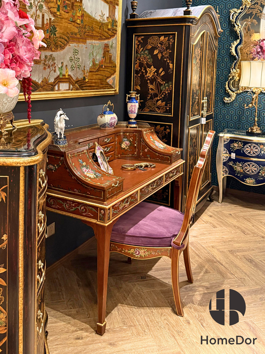 HomeDor Luxury Ornate Baroque Upholstered Writing Chair