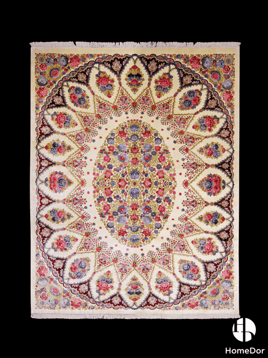 HomeDor Kashmir Handmade Mulberry Silk Vibrant Floral Pattern Rug 272cm × 363cm