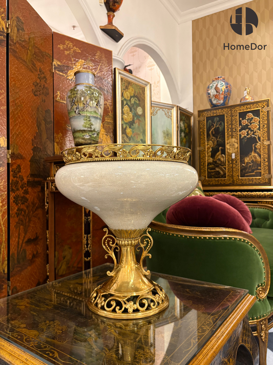 HomeDor Opulent Cream Porcelain Pedestal Planter