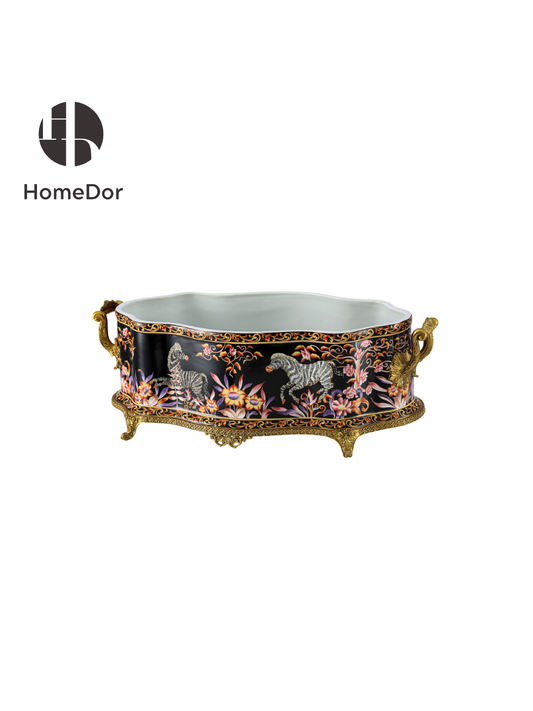 HomeDor Opulent Luxe Black & Gilded Zebra Floral Decor Set