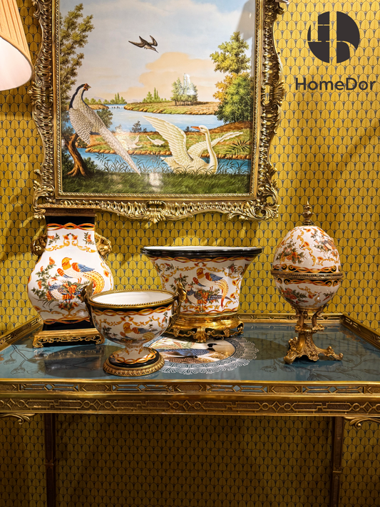 HomeDor Royal Golden Pheasant & Floral Gilt Decor Set