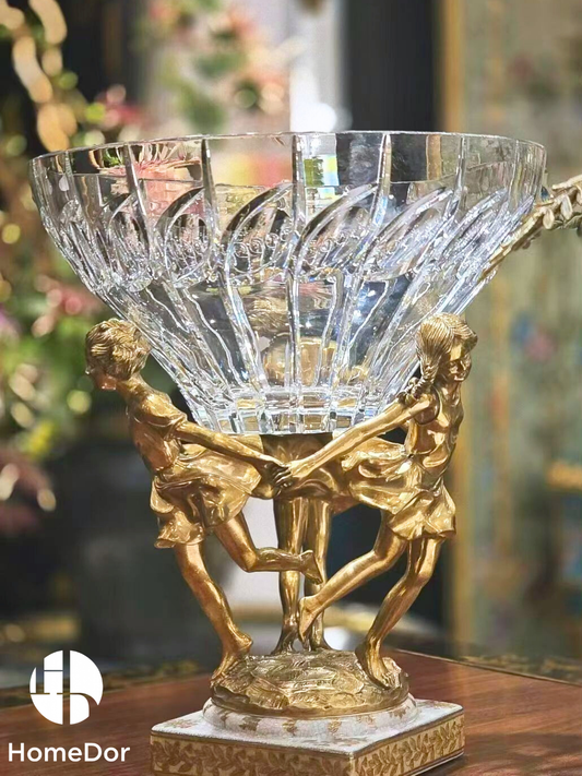 HomeDor Prague Collection Exquisite Crystal Fruit Bowl with Brass Girls