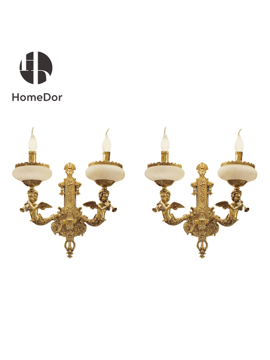 HomeDor Rococo Gilded Bow & Cherub 2-Light Wall Sconce
