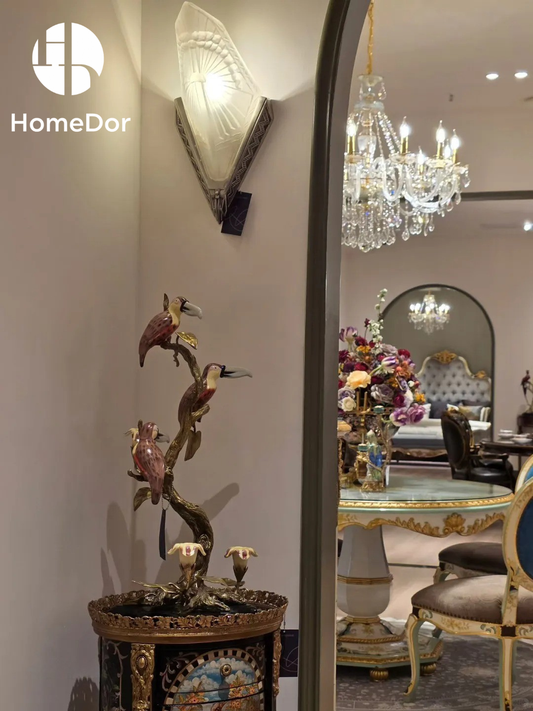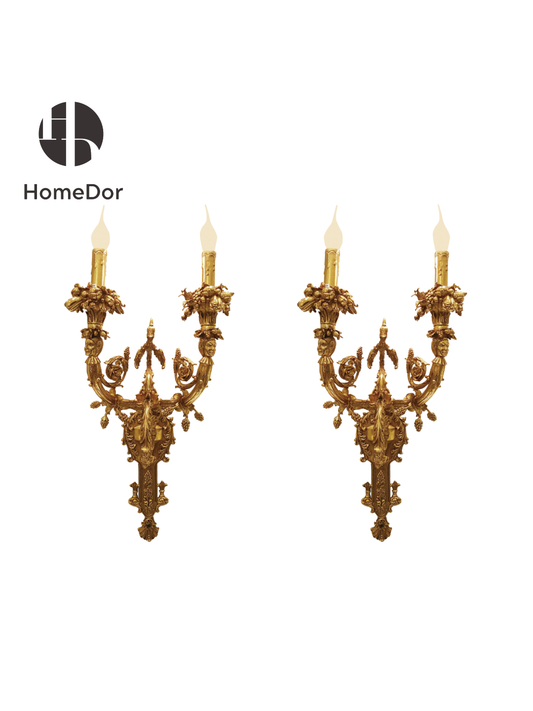 HomeDor Luxury Rococo Double Arm Glass Wall Sconce