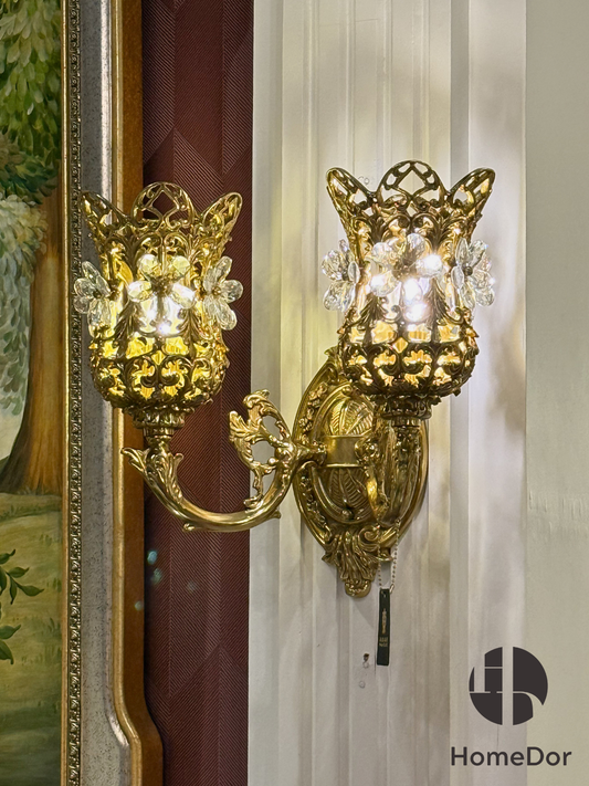 HomeDor Rococo Crystal Flower Brass Wall Sconce