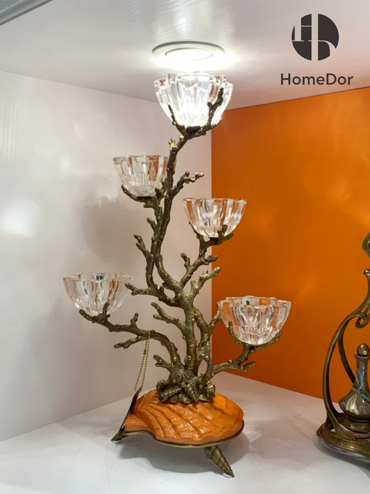 HomeDor Prague Collection Seaside Brass Branch Crystal Candle Holder