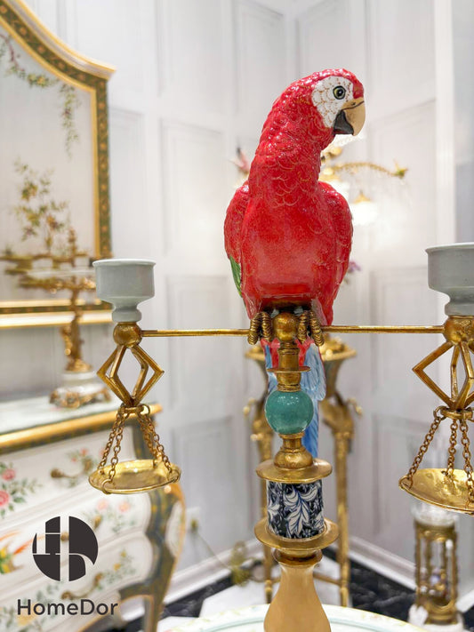HomeDor × FH&Home | Candelabro y bandeja de postres con diseño de loro retro glamuroso