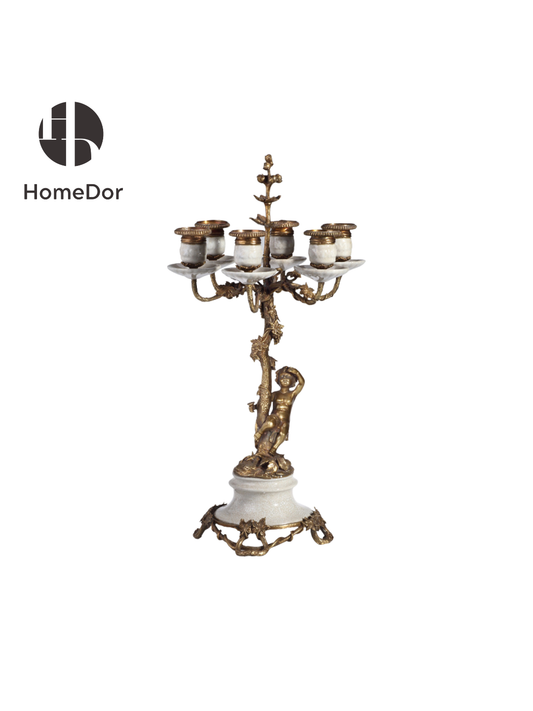 HomeDor Luxury Decorative Cherub 6-Arm White Candelabra Pair