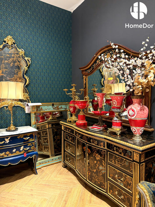 HomeDor Luxury Baroque-Inspired Floral Motif Gilded Decor Set