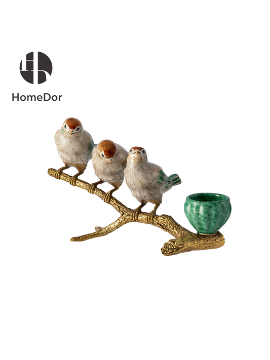 HomeDor Verdant & Gilded Birds on Branch Candle Holder